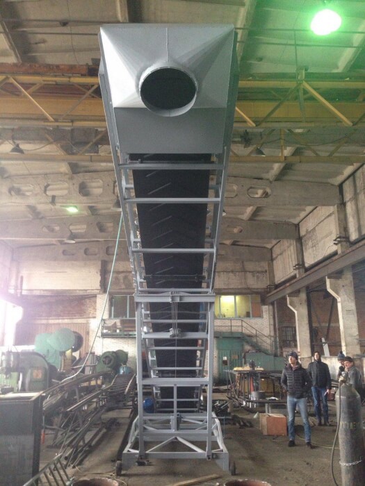 The length of the conveyors varies from 6 to 31,5 m, and the height of slip throw depends on characteristics of bulk solid materials and area of operations. At the request of the customer, conveyors are supplied with chevron conveyor belt. The equipment can rotate around the loading axis; the height of slip throw is adjustable; the device can also be equipped with self-propelled chassis. In order to facilitate working process the manufacturer offers a precipitation shelter and dumping abrasive resistant sleeve of different cross-section.